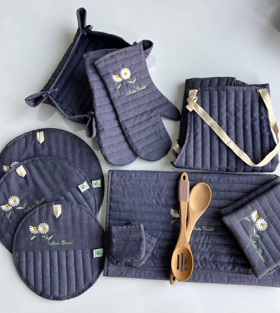 سرویس پارچهای آشپزخانه در طرح و رنگهای زیبایی تولید میشود که موجب ایجاد تعادل، شور و نشاط و حس دوستداشتنی برای محیط اطراف خواهد شد. با بهترین سرویس آشپزخانه پارچهای میتوان بهراحتی و با هزینه اندک حال و هوای جدید برای آشپزخانه ایجاد کرد و تغییرات چشمگیری در آن ایجاد کرد. برای خرید سرویس پارچهای آشپزخانه مانند سایر کالاهای بهداشتی مثل حوله تن پوش فانتزی، حتما به جنس آن توجه کنید. الیاف طبیعی نرمتر و قابلیت جذب رطوبت بالاتری دارند.